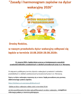 Uproszczenie zapisów na dyżury wakacyjne w przedszkolach i oddziałach przedszkolnych w szkołach.